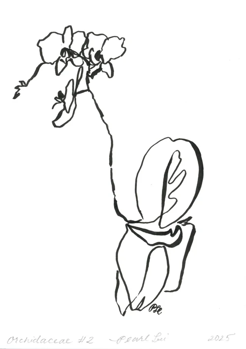 Inspired by my growing collection of orchids and their growth rotating over a course of 4-6 months, I painted these using brush and ink. Studying both the delicate yet strong nature of orchids, I used a calligraphic brush stroke to create dynamic lines. Influenced by both my eastern heritage and western motherland, I merged my study of Matisse’s line sketches and traditional Chinese ink painting, Wénrénhuà (literati painting) or more broadly Guóhuà (native Chinese paintings) to build a collection of clean minimalistic paintings with expressive movement.