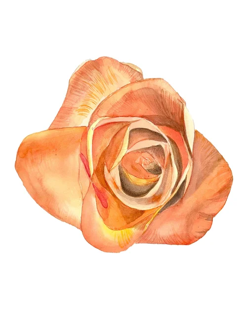 "Peachy" Peach Color Rose Painting by Pearl Lui, 8×10, Watercolor, 2025.